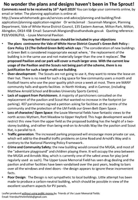 To view details of the application and object go to the Vale planning portal and search for Ref P19/V0696/FUL- Louie Memorial Pavilion